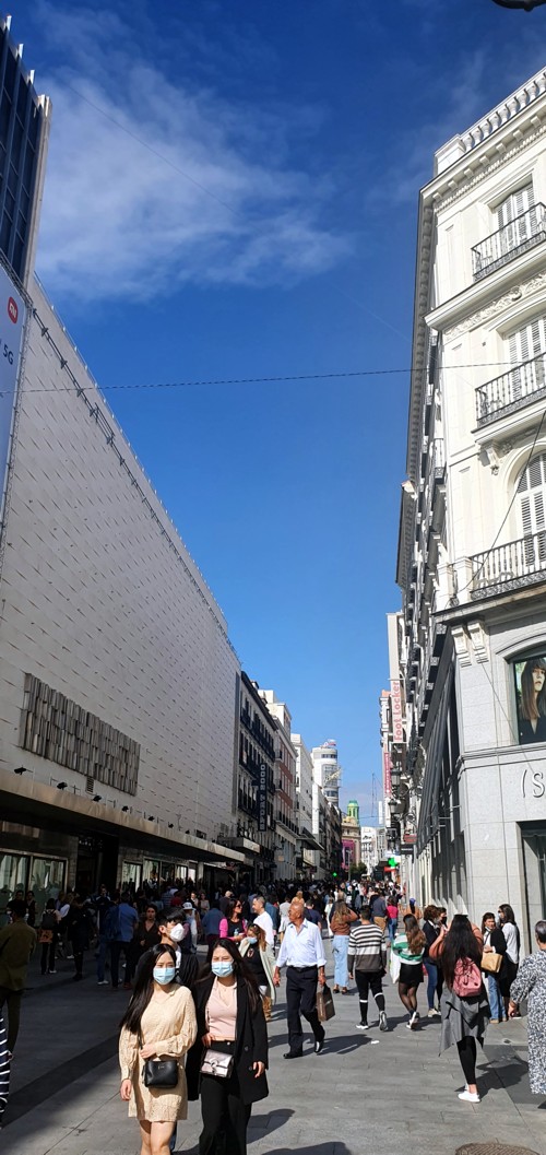 la gente viene y va como dice la canción. La calle preciados con sus grandes comercios como el Corte Ingles y el FNAC y que