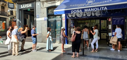 décimo de lotería en la oficina de Doña Manolita. Ver el
