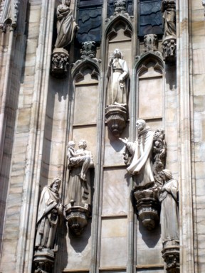 por estatuas (foto 6), siendo la estatua de cobre dorado llamada "Madonnina" el