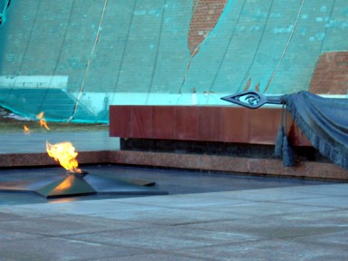 inscripción que en ruso reza: "Tu nombre es desconocido, tus hechos inmortales".