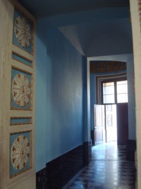 laterales, suelo de mármol decorado y pinturas murales casi tridimensionales.