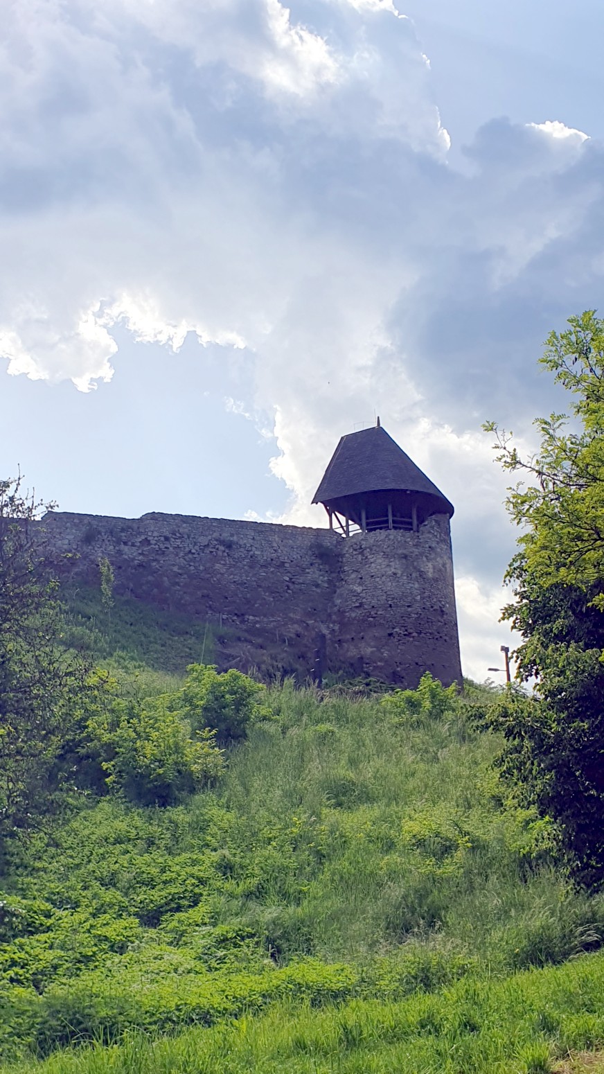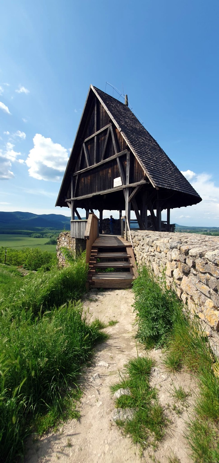 Este castillo ya se ve desde lejos por situarse a los pies del Börzsöny, en un solitario cono de andesita de 286 m de altura en su borde oriental .