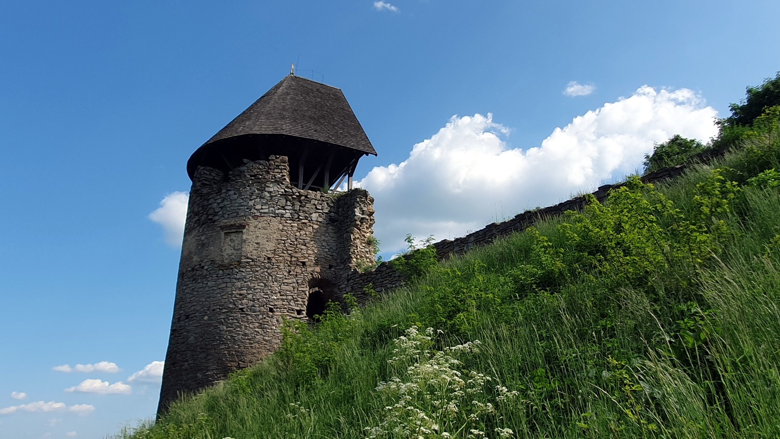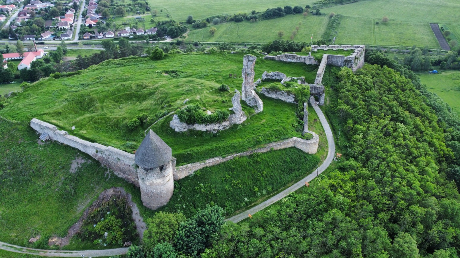 grande, la pared de tres pisos de la antigua torre, que se eleva como un signo de exclamación, es el remanente más grande. Desde las murallas y el bastión hay una maravillosa vista