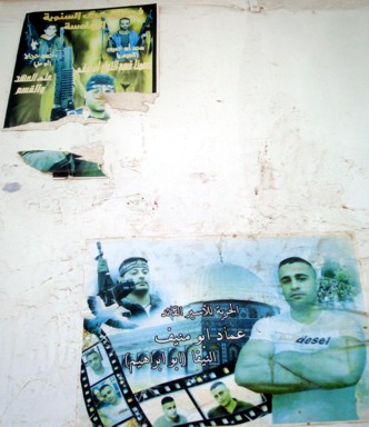 (fotos 4 a 7), pintadas (foto 8), y los típicos afiches de mujaidines dispuestos