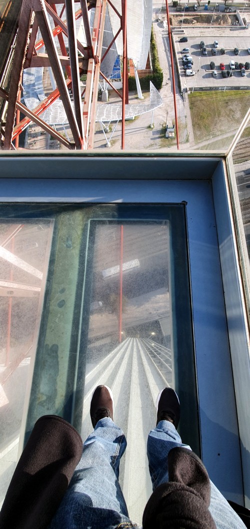 cruza un puente, permitiéndote mediante un ascensor subir hasta uno de sus pilares, concretamente el numero 7.