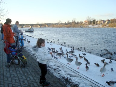 en calma, y los patos se acercan tranquilamente a que les den de comer (foto