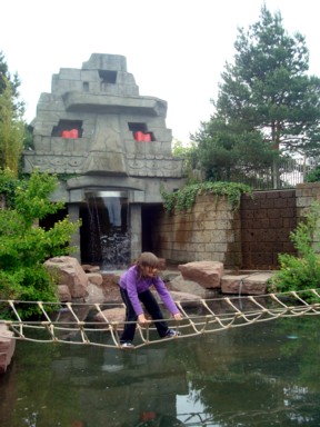 largos puentes colgantes (foto 1), o bien jugar con los típicos muñecos
