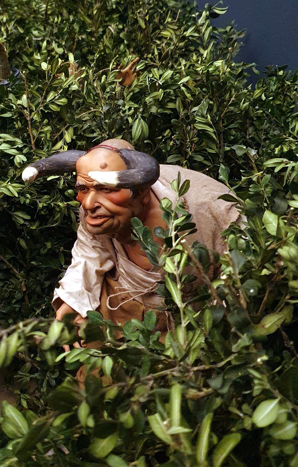con elementos naturales de los Reales Sitios: las hojas de la poda del Campo del Moro han servido para reproducir las hayas del belén, y el boj