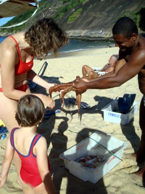 como sacan del mar peces y pulpos, nosotros nos acercamos a jugar con estos