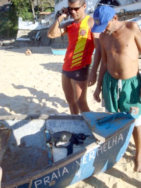 despistado un pingüino, si, un pingüino austral perdido en Río de Janeiro (foto