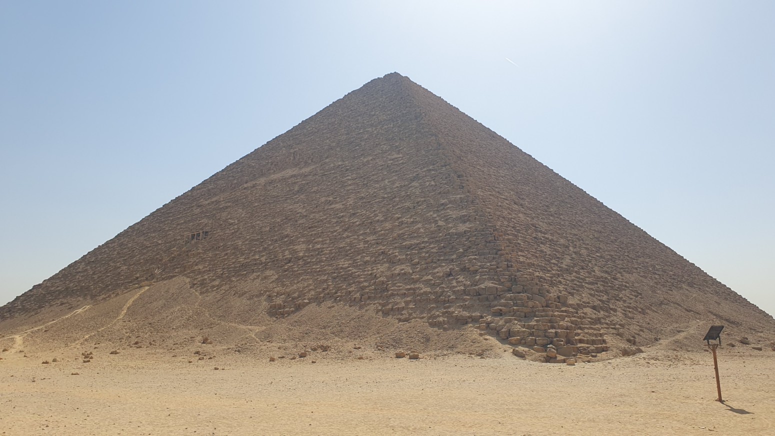 La Pirámide Roja, tiene el honor de ser la pirámide más antigua del mundo. Su inclinación es más suave que las de Guiza y su nombre le viene