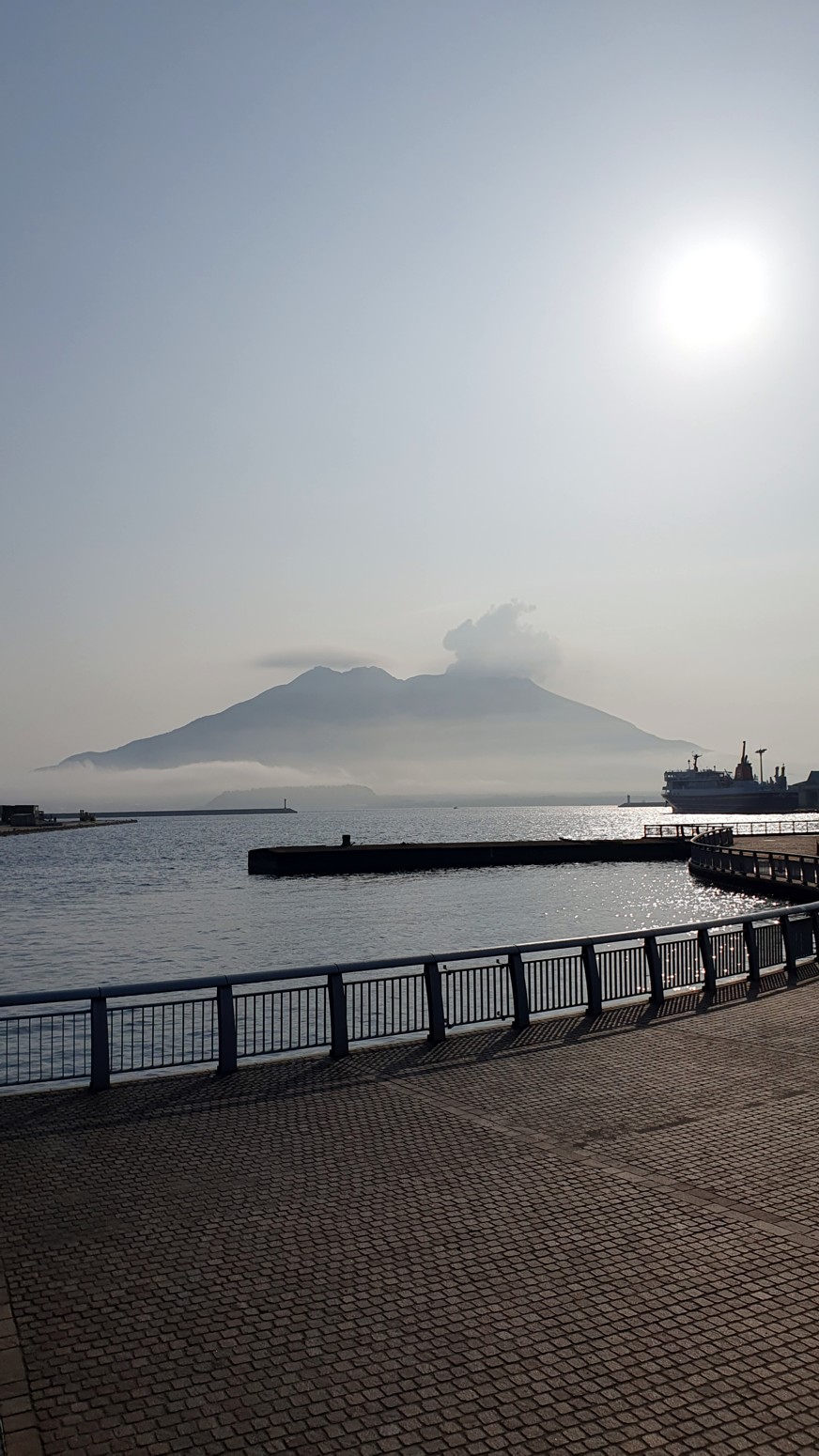 lugar varias veces al día. Situado en el centro de la bahía de Kagoshima, Sakurajima es la característica geográfica más prominente de la zona, con una elevación de 1117 metros