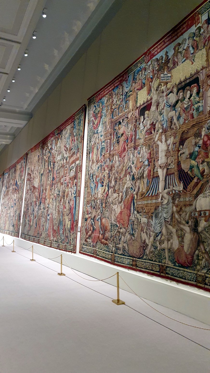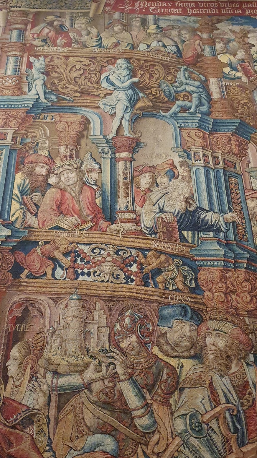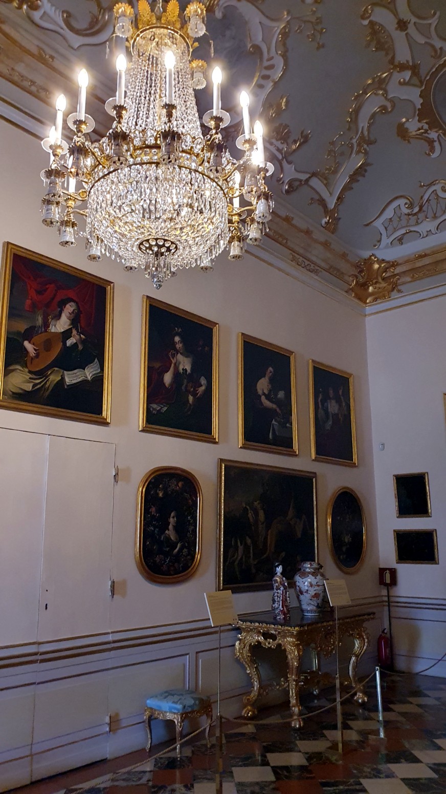 En el interior se empieza por la sala de tapices y se recorren todas las salas y aposentos, siendo el punto culminante el