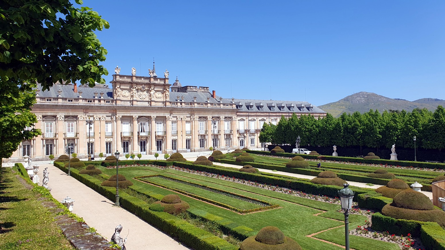 El Palacio Real está situado en el municipio del Real Sitio de San Ildefonso en la sierra de Guadarrama, a poco más de 13