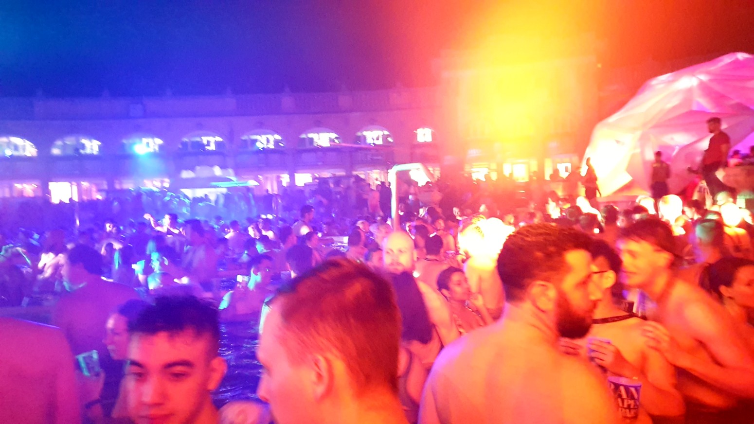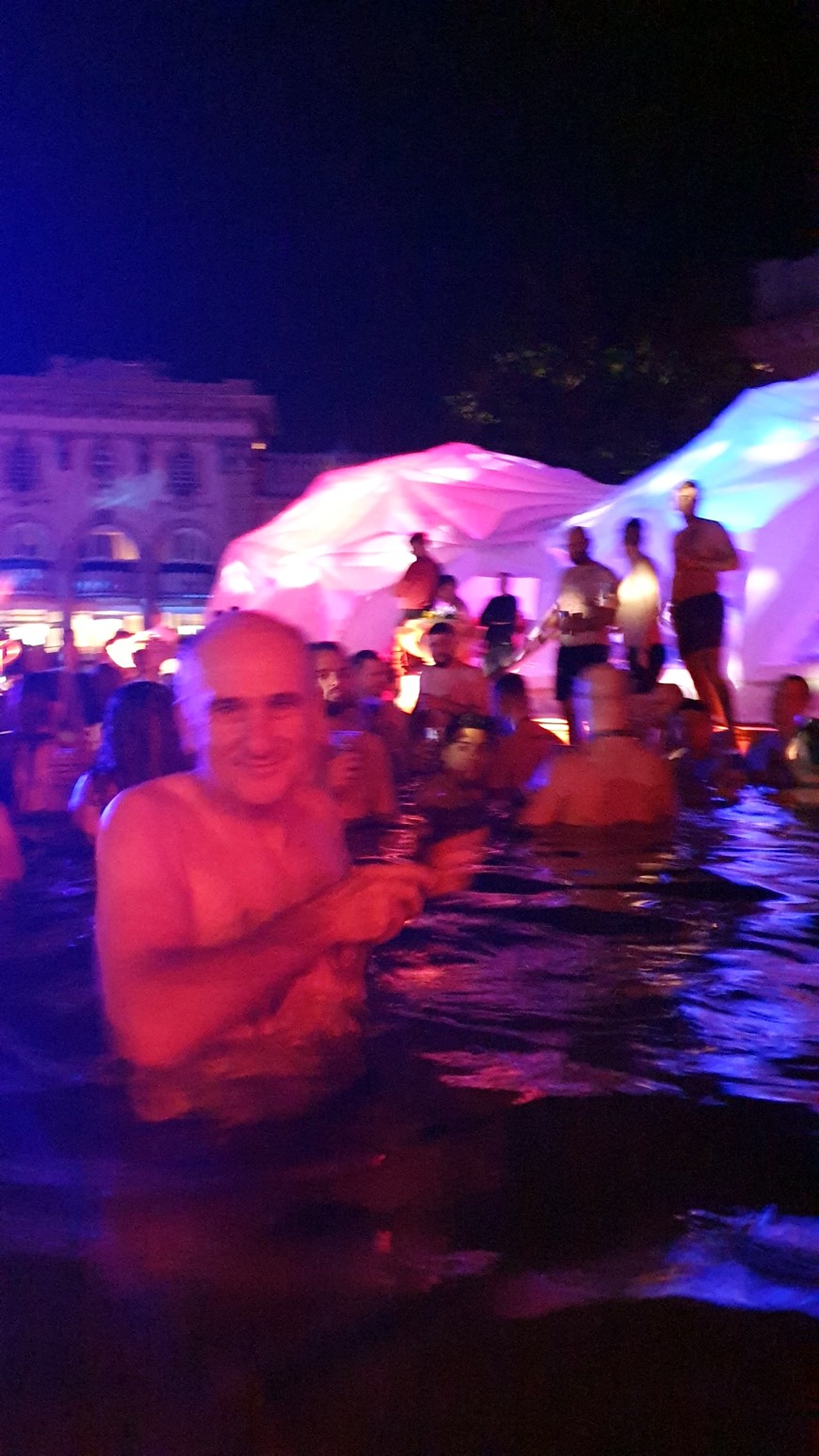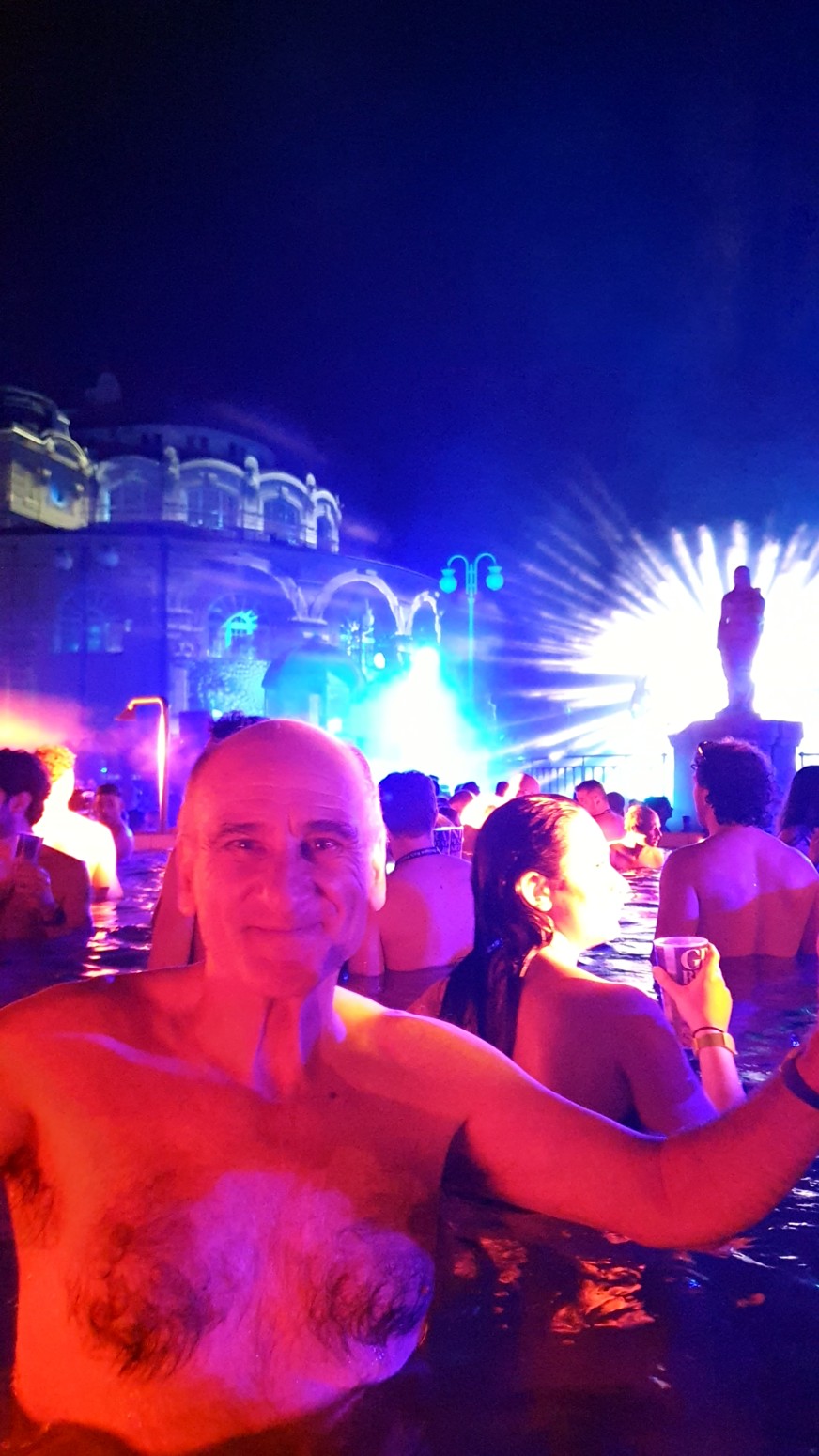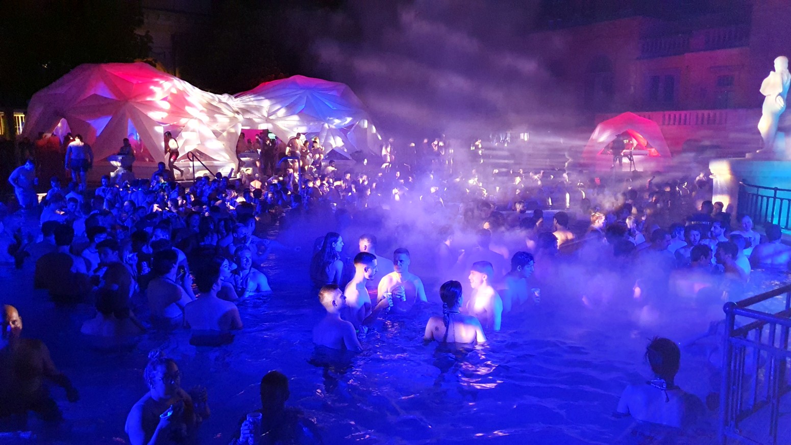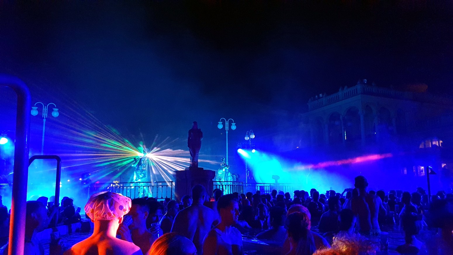 por lo que el ambiente con la música y las luces es muy espectacular con el entorno de los viejos y famosos baños lo que