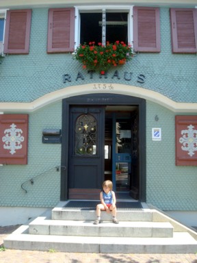 Ayuntamiento (foto 3), o las innumerables casas con sus ventanales de madera