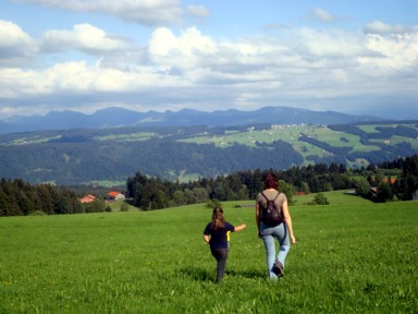 una espléndida vista hacia los Alpes. Y desde el pueblo muchas excursiones, por