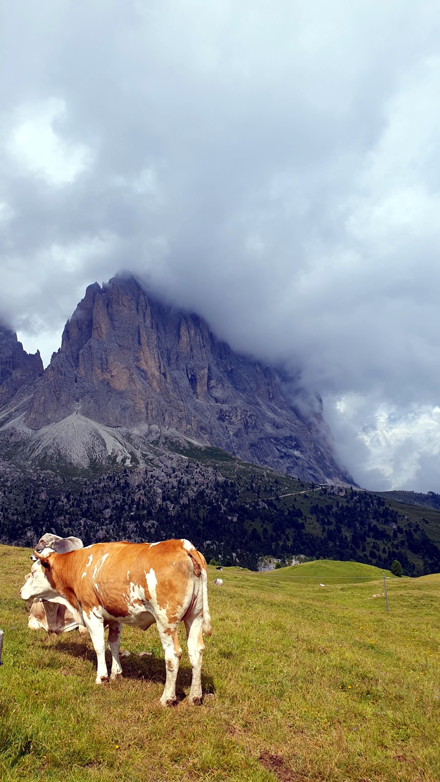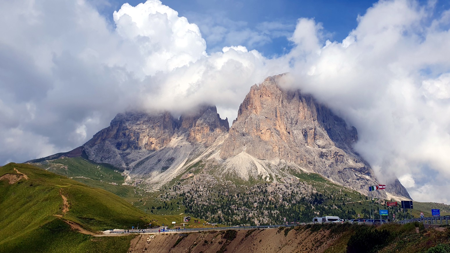 El paso del Sella se encuentra a 2200 metros sobre el nivel del mar y divide el Val di Fassa y el Val Gardena, o lo que