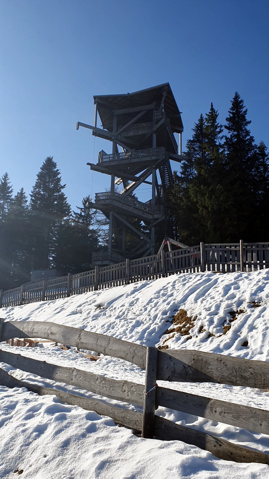 Una vez en la cima hacemos una visita a la "Millenniumswarte tower", un mirador de madera al que se puede acceder a lo