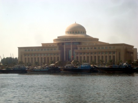 El centro de Sharjah es la laguna artificial de Khalid a cuyas orillas