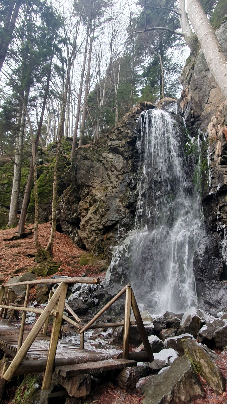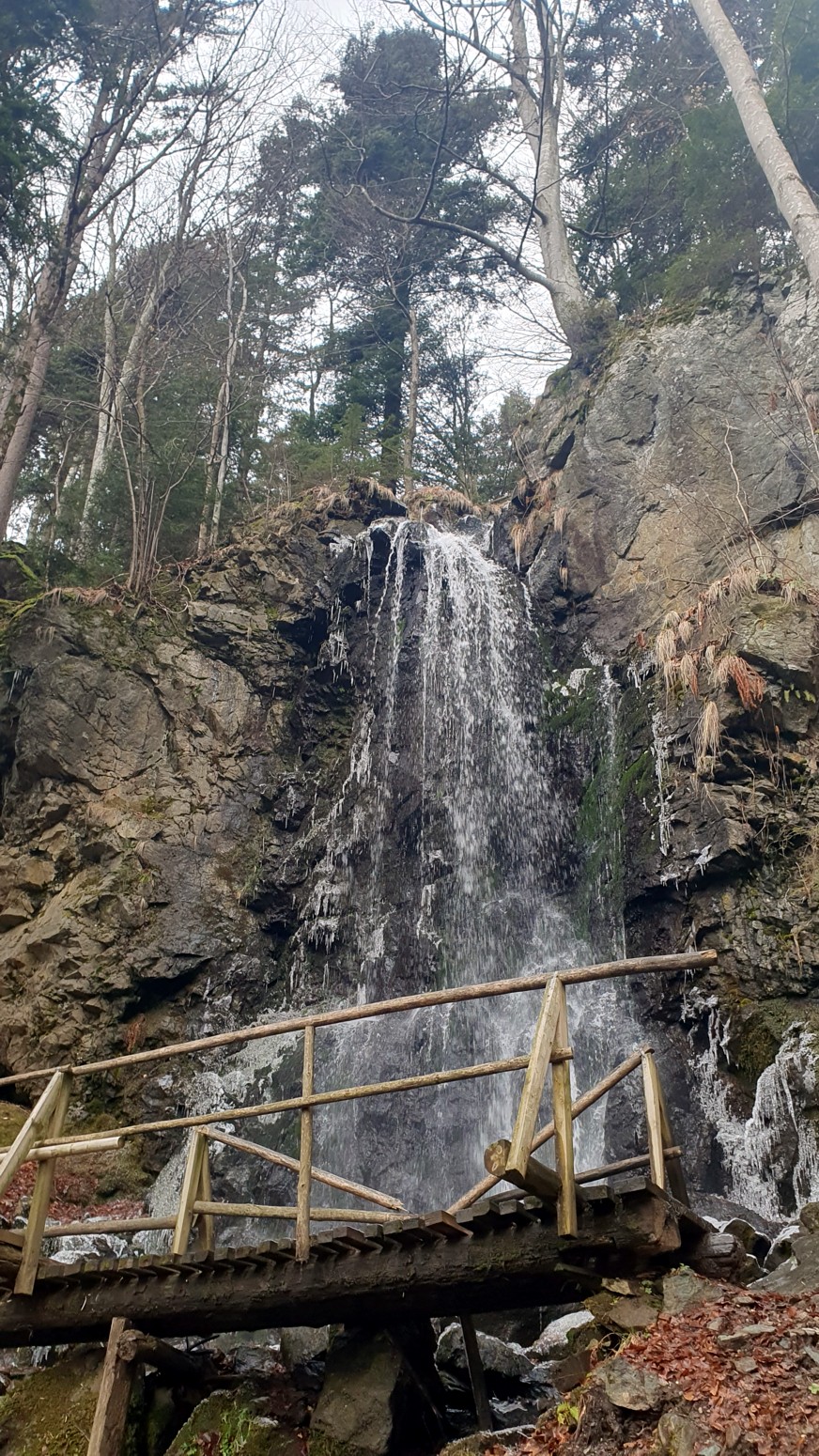 Esta cascada tiene 16 metros de altura y la mayor parte del invierno se encuentra congelada, pero nosotros solo vimos