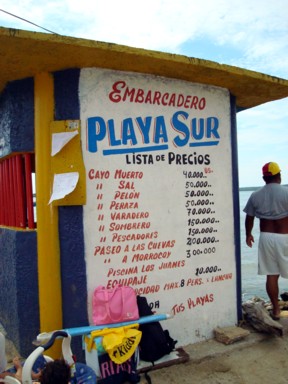 aguas transparentes y arenas blancas. En estos están bien marcadas las tarifas