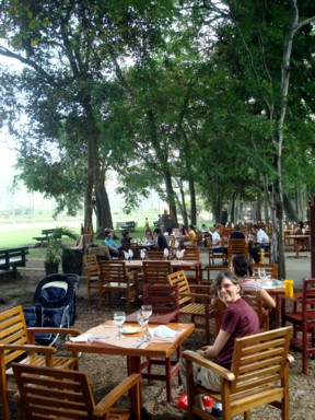 fresco bajo unos inmensos árboles, con un esmerado servicio, y unos platos