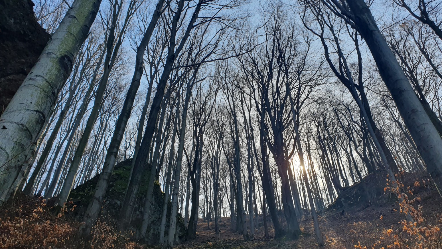 sinuosos, hayas esbeltas que se elevan hacia el cielo, paredes de roca escarpadas, panorama que se asoma entre los árboles, emocionantes formaciones