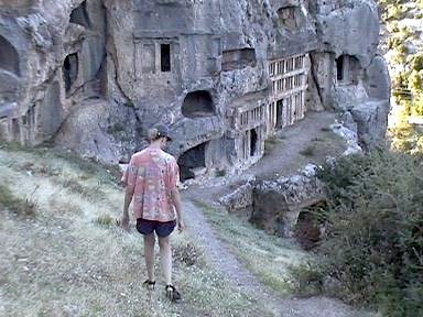 célebres tumbas excavadas en la roca, y multitud de sarcófagos de piedra.