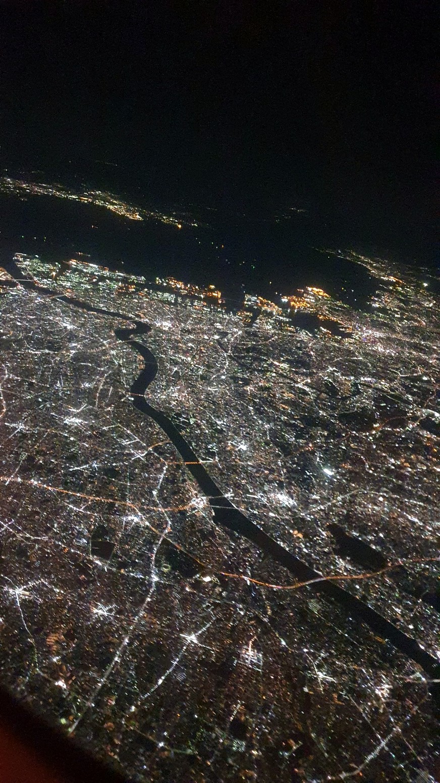 Fuji desde la ventanilla del avión. En seguida anochece y la vista