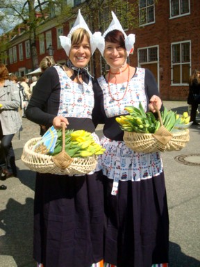 Hay mucha jóvenes y guapas holandesas repartiendo tulipanes (fotos 11 y 12),