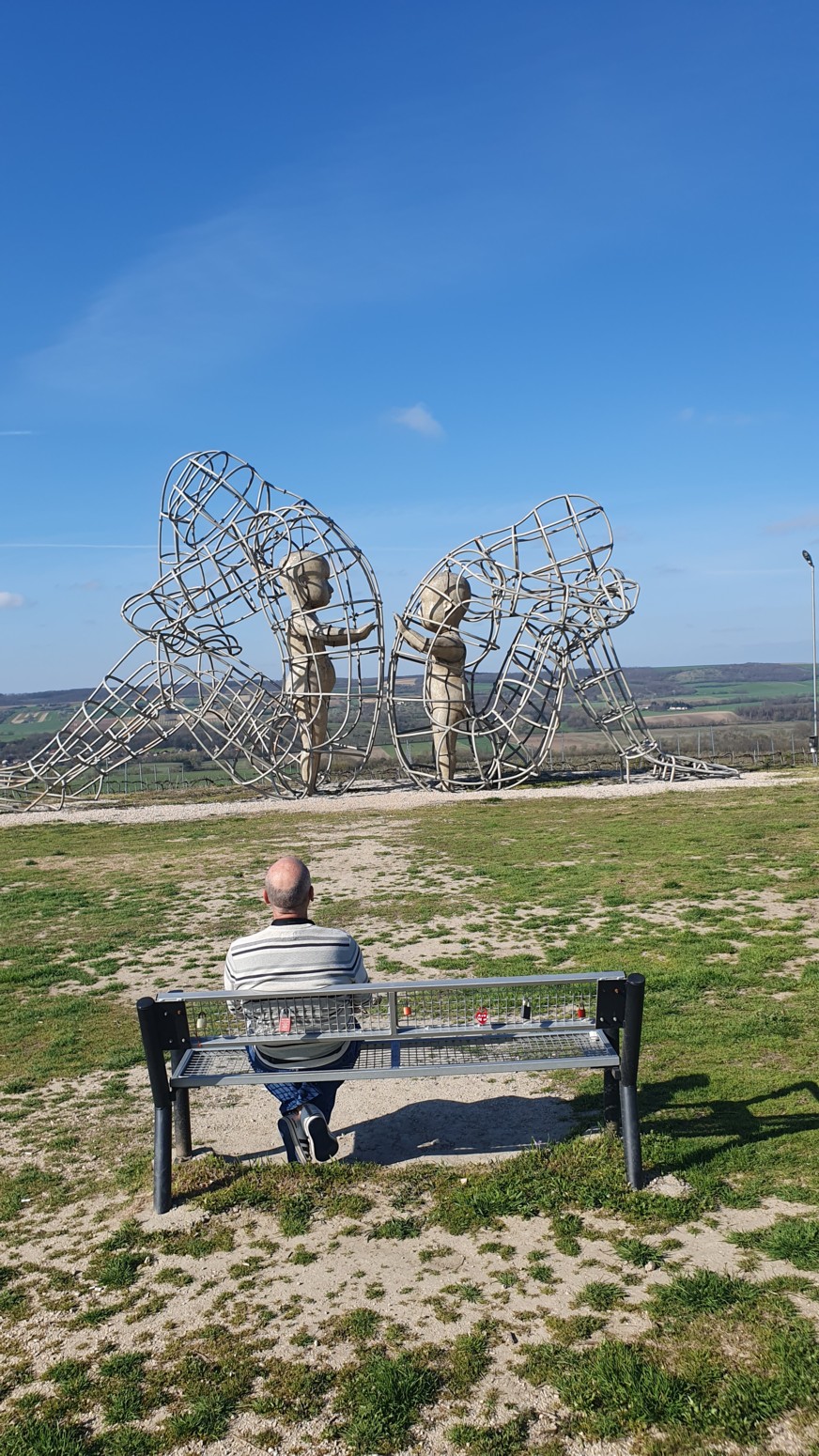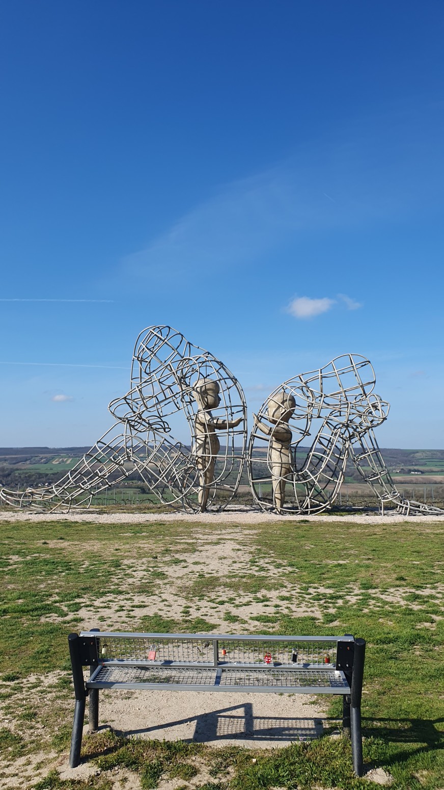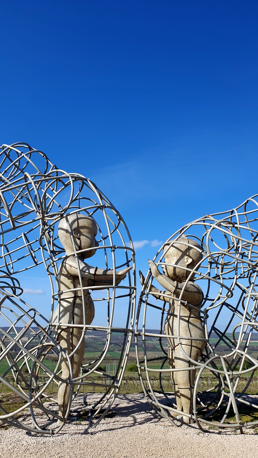 espaldas la una a la otra, con dos figuras infantiles una frente a la otra. De acuerdo con la descripción colocada en la colina, los cables