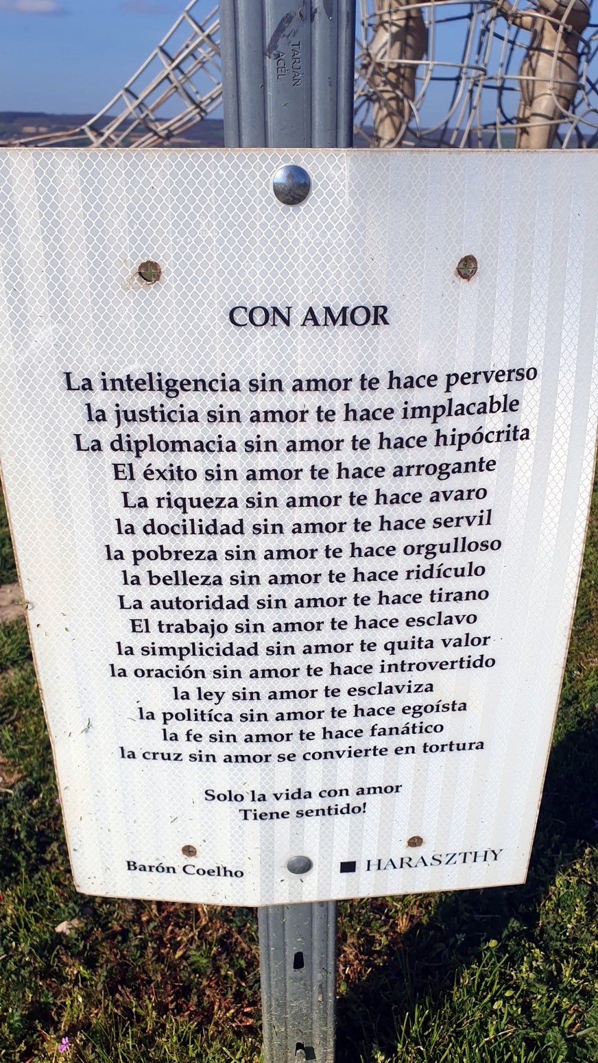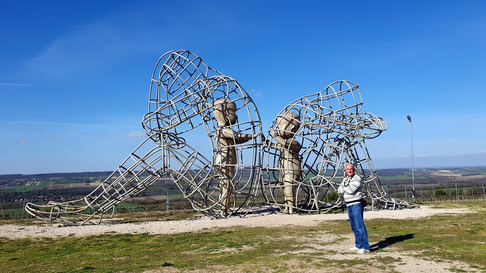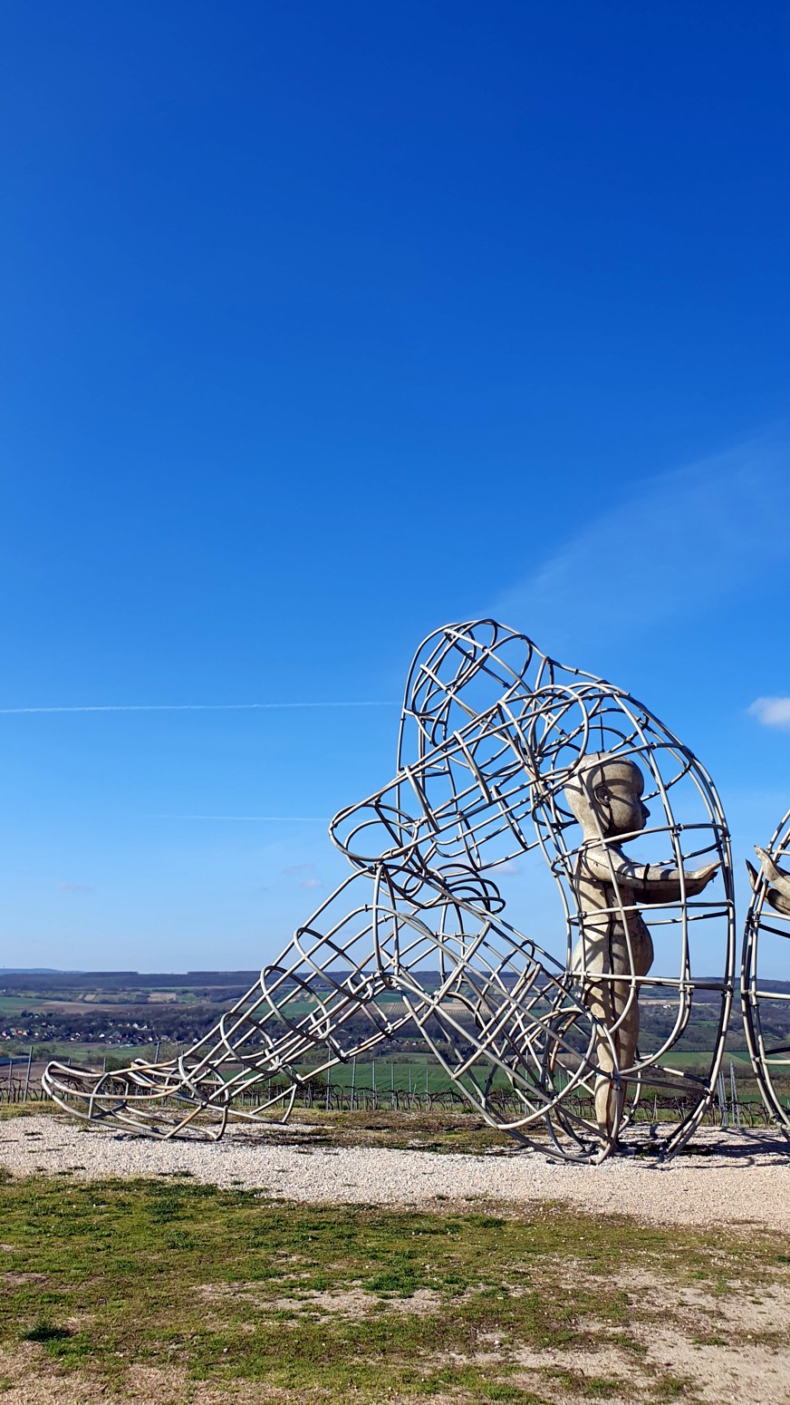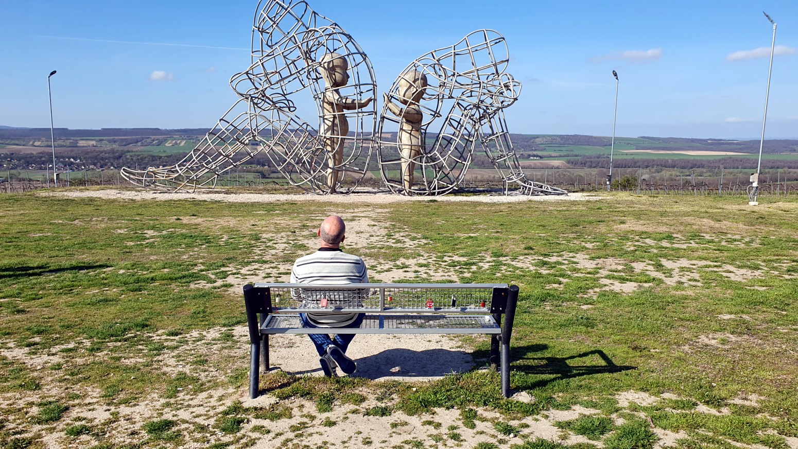espaldas la una a la otra, con dos figuras infantiles una frente a la otra. De acuerdo con la descripción colocada en la colina, los cables