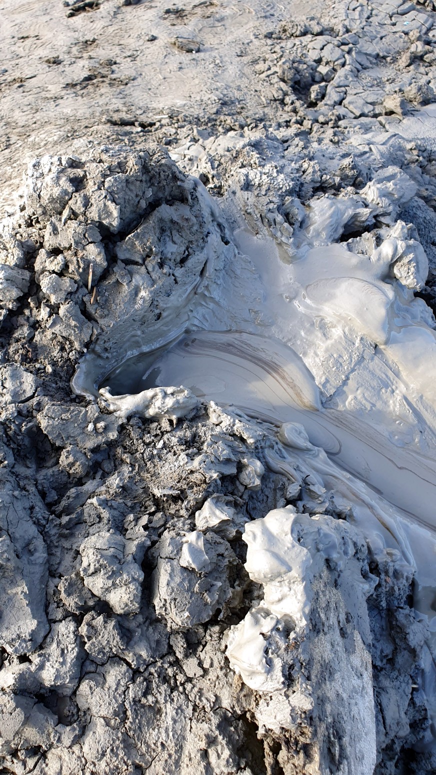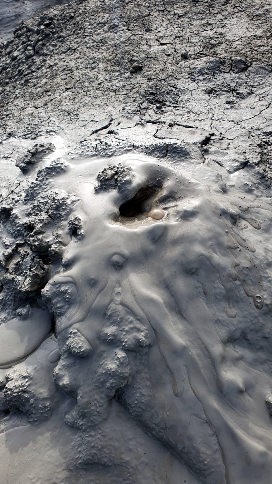 de estos volcanes, se ven grandes burbujas que se forman y estallan instantáneamente en la superficie del lodo.