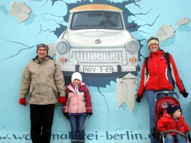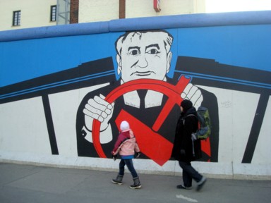 famosísima del "Trabant" (el coche utilizado en la DDR) atravesando el muro
