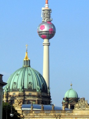 la puerta de Brandemburgo, y dentro de un balón gigante (foto 2)se podía admirar