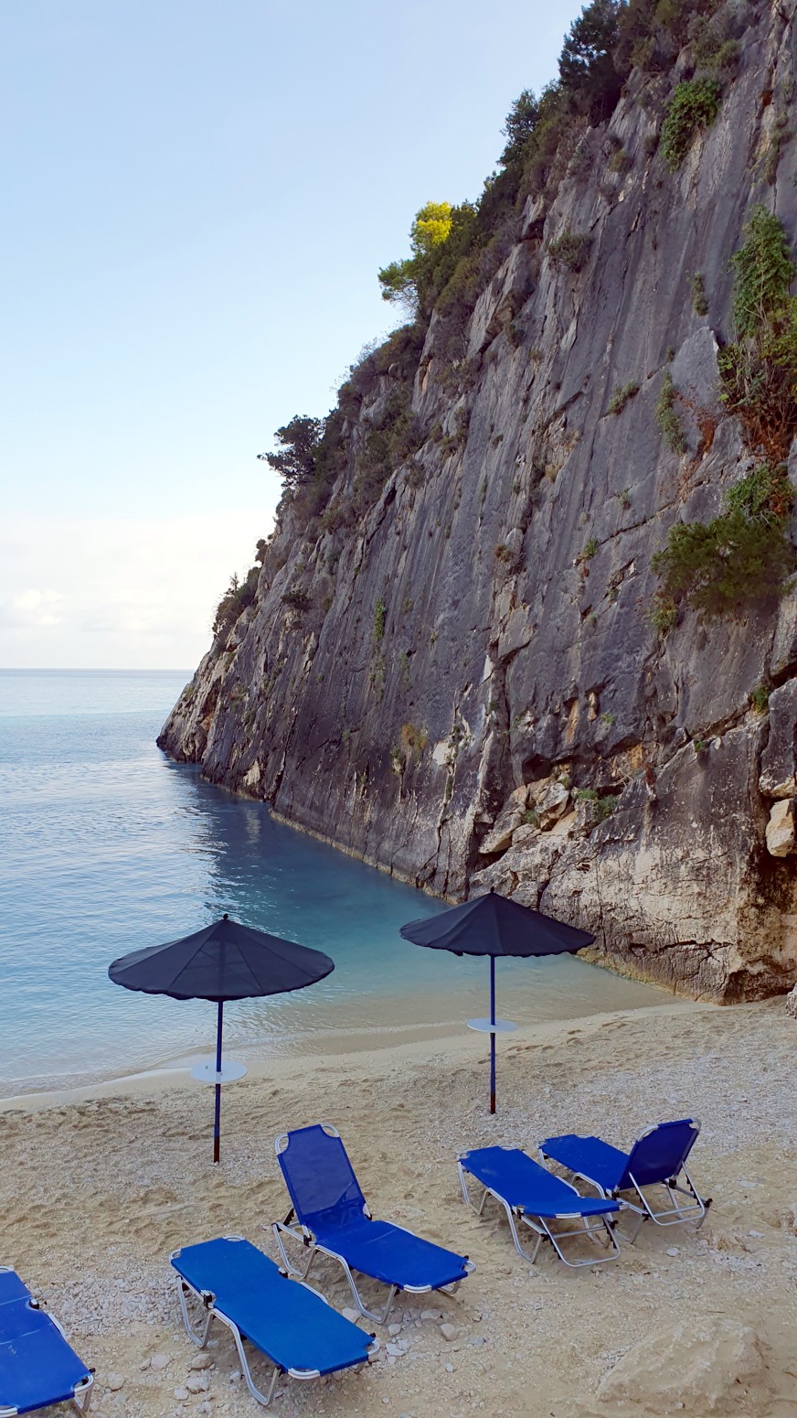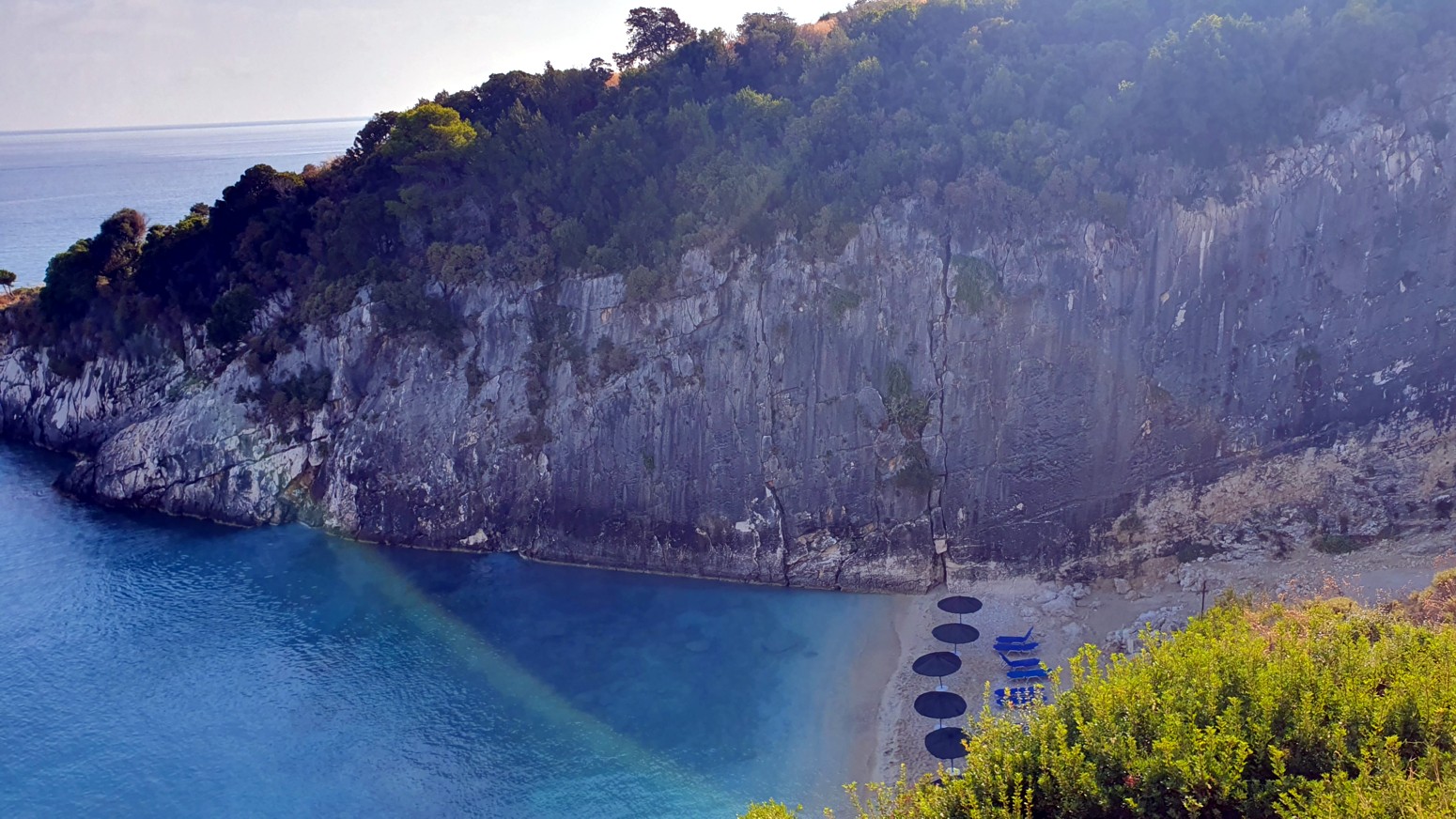 sulfurosos que fluyen de las cuevas marinas kársticas cercanas, y el acantilado cortado a pico sobre la playa que la hace muy