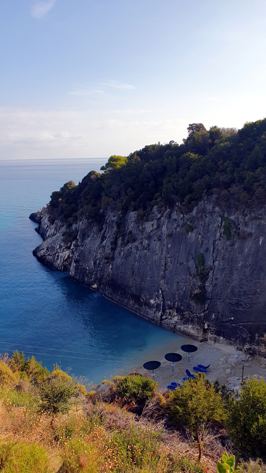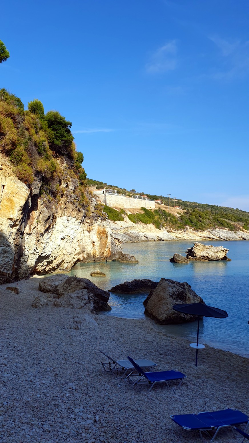 En la parte superior de la playa hay un parking y una taberna con la mejor vista de la playa.