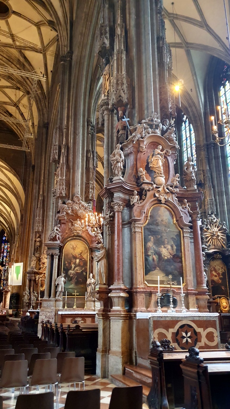 von Hildebrandt. En su interior, presenta un llamativo trabajo de estuco de Alberto Camesina y frescos impresionantes de