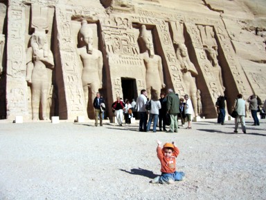 Ramses II de 20 metros de altura mirando hacia el sol naciente (foto 2). Si os fijáis en la