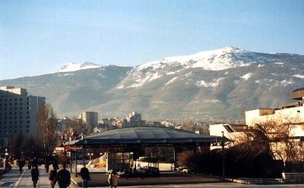 ciudad de Sofía en invierno con el manto de nieve que la cubre a ella y a las montañas
