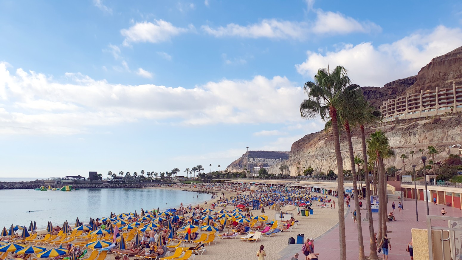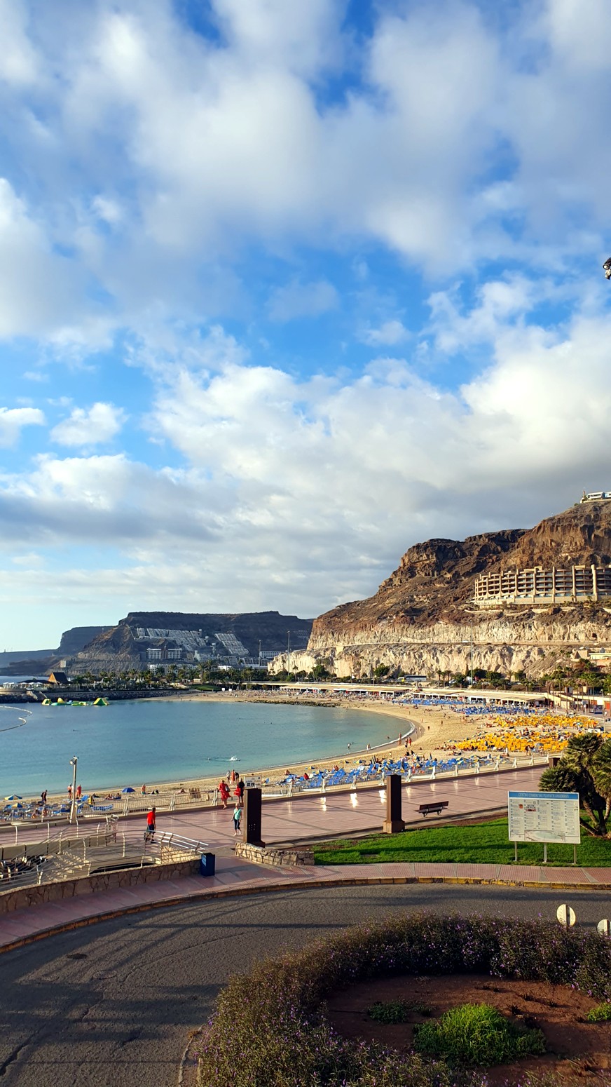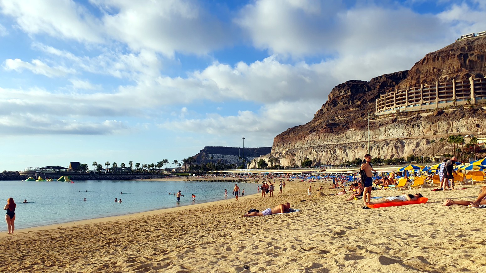 Continuamos con nuestra ya costumbre de terminar el día en alguna playa al oeste de la isla y esta vez la elegida es Playa de Amadores, una playa artificial de arena blanca de unos 500 m de longitud donde el sol, un océano de color azul turquesa y un mar de aguas calmadas son la tónica de sus días. Realmente se ha pensado como una playa supertranquila y disfrutaremos precisamente de eso "tranquilidad", y cuando nos cansemos de eso, bañarnos, hacer castillos de arena, y tomar cervezas en la playa, pues la playa de Amadores esta conectada con la vecina playa de Puerto Rico, a través de un paseo marítimo de alrededor de un kilómetro de longitud que se puede recorrer a pie cómodamente. Y entre una playa y otra esperar la puesta de sol que se puede disfrutar desde el muelle de Amadores donde hay dispuestas unas tumbonas para tal fin...