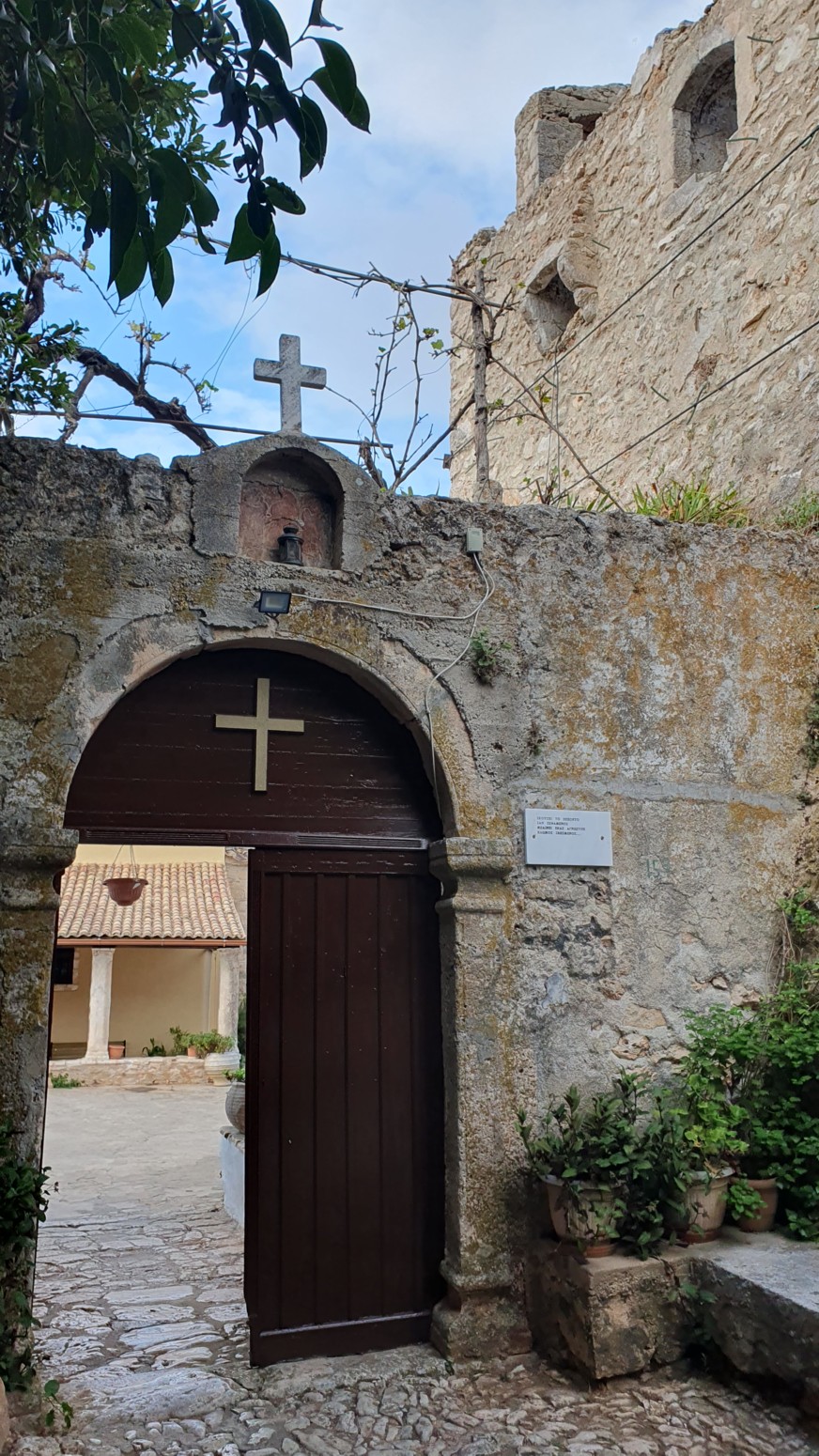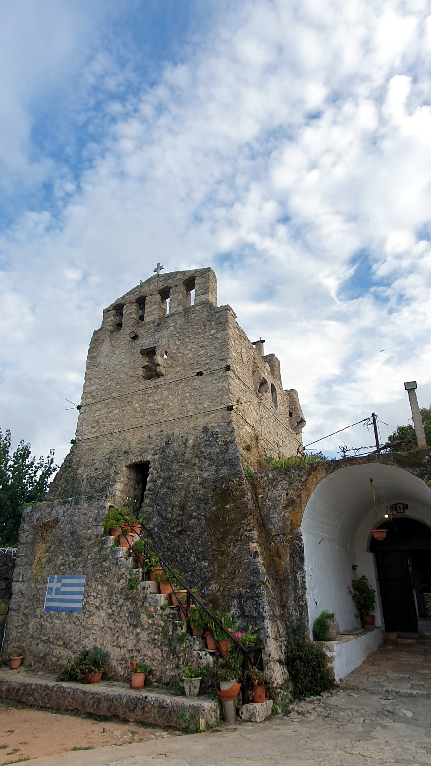 milagrosamente al catastrófico terremoto de 1953. A la derecha de la entrada se puede ver una impresionante torre defensiva que hoy se utiliza