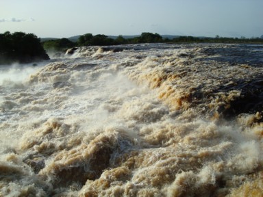 Partimos de Canaima caminando para superar las tremendas cascadas que caen sobre