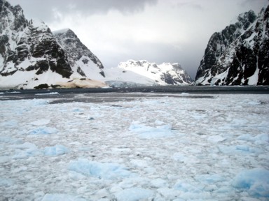 Australiano, el cual contrasta con esta fría y helada Isla Petermann. de apenas