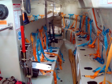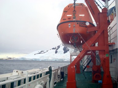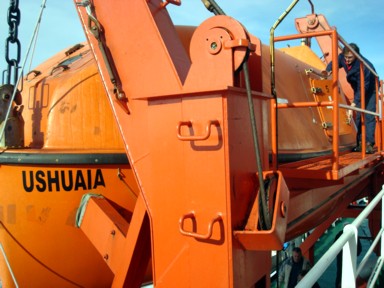 en cubierta, pedimos que nos abrieran y enseñaran como es un bote salvavidas por