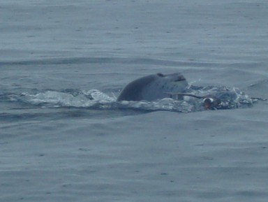 desdichado pingüino que también está nadando cerca nuestro. Nos deja y va tras