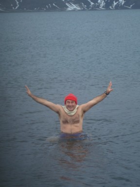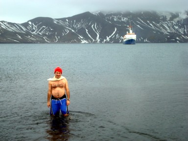 tradición, el último día de crucero, bañarse en las frías aguas antárticas,