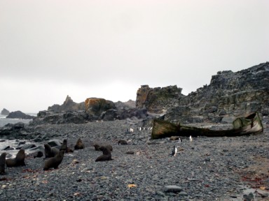 mucha fauna antártica: pingüinos de Barbijo y Papua, un par de focas de Weddell,