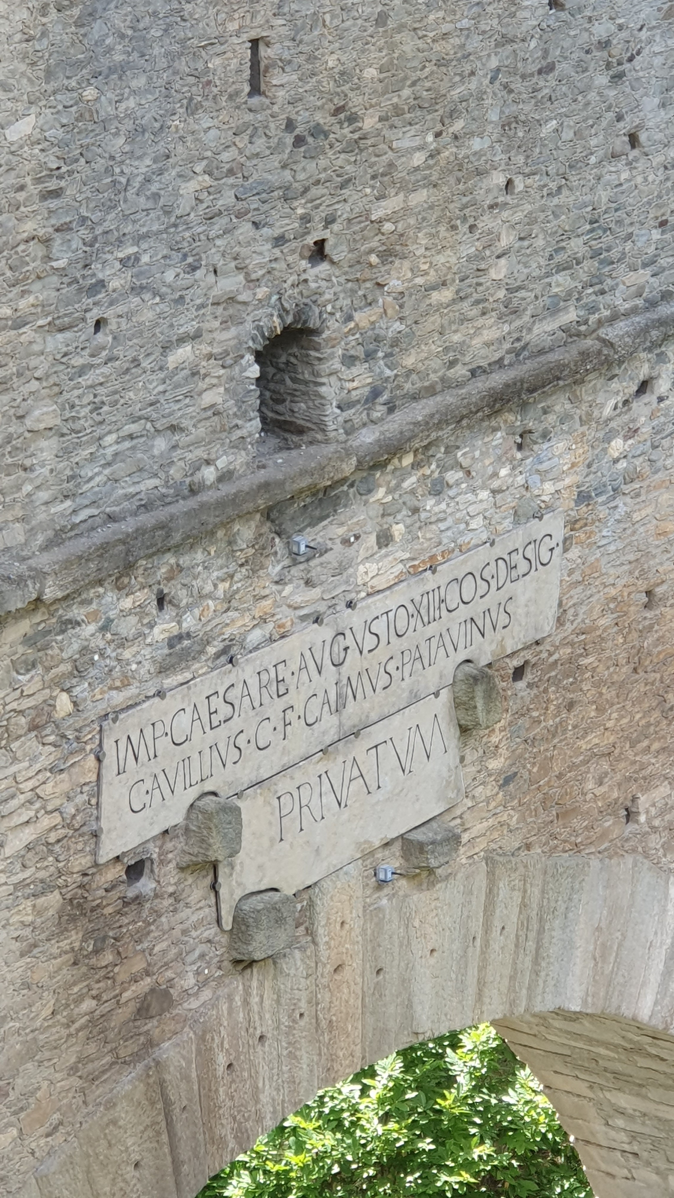 La Puerta Pretoria que era la puerta principal de acceso a la ciudad de Aosta. Tenía dos arcos paralelos, cada uno con 3